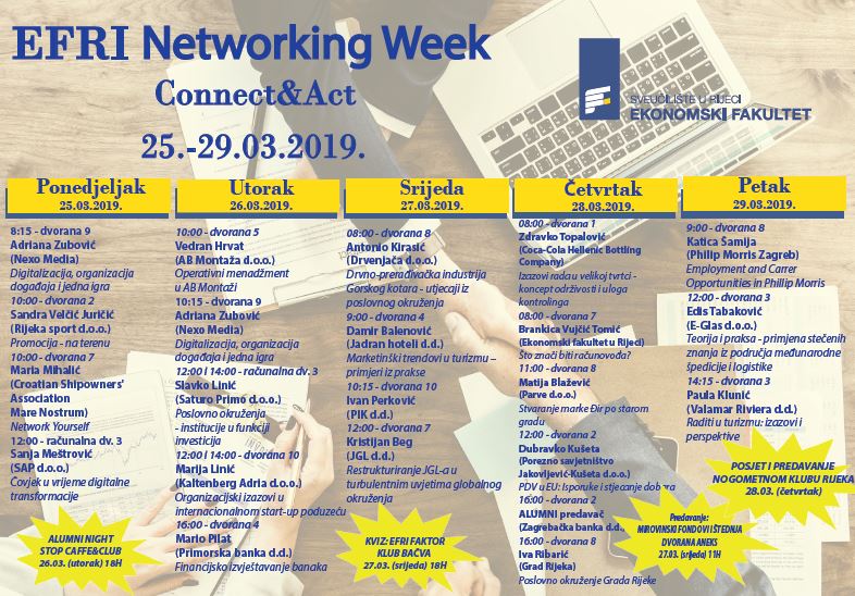 Na Ekonomskom fakultetu u Rijeci će se od 25. do 29. ožujka 2019. održati EFRI NETWORKING WEEK - Connect&Act.