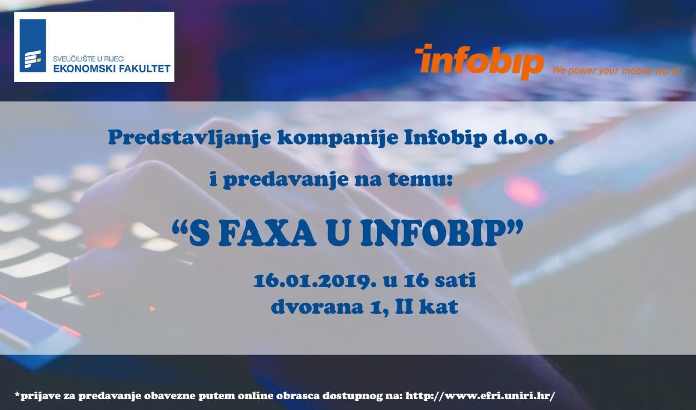 Ekonomski fakultet u Rijeci, 16. siječnja, ugostit će predstavnike poduzeća Infobip d.o.o. Radi se o međunarodnoj IT i telekomunikacijskoj kompaniji koja diljem svijeta ima svoje urede, a upravo su 60. otvorili u Rijeci pred kraj prošle godine.