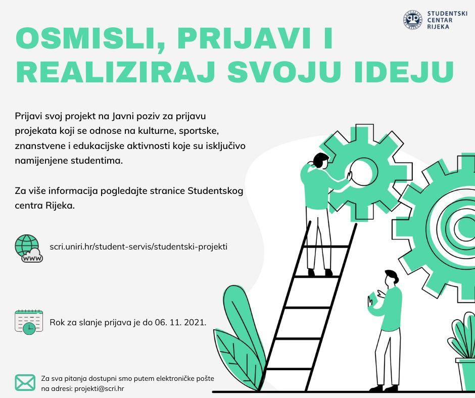 Studentski centar Rijeka objavio je Javni poziv za prijavu projekata koji se odnose na kulturne, sportske, znanstvene i edukacijske aktivnosti koje su isključivo namijenjene studentima.