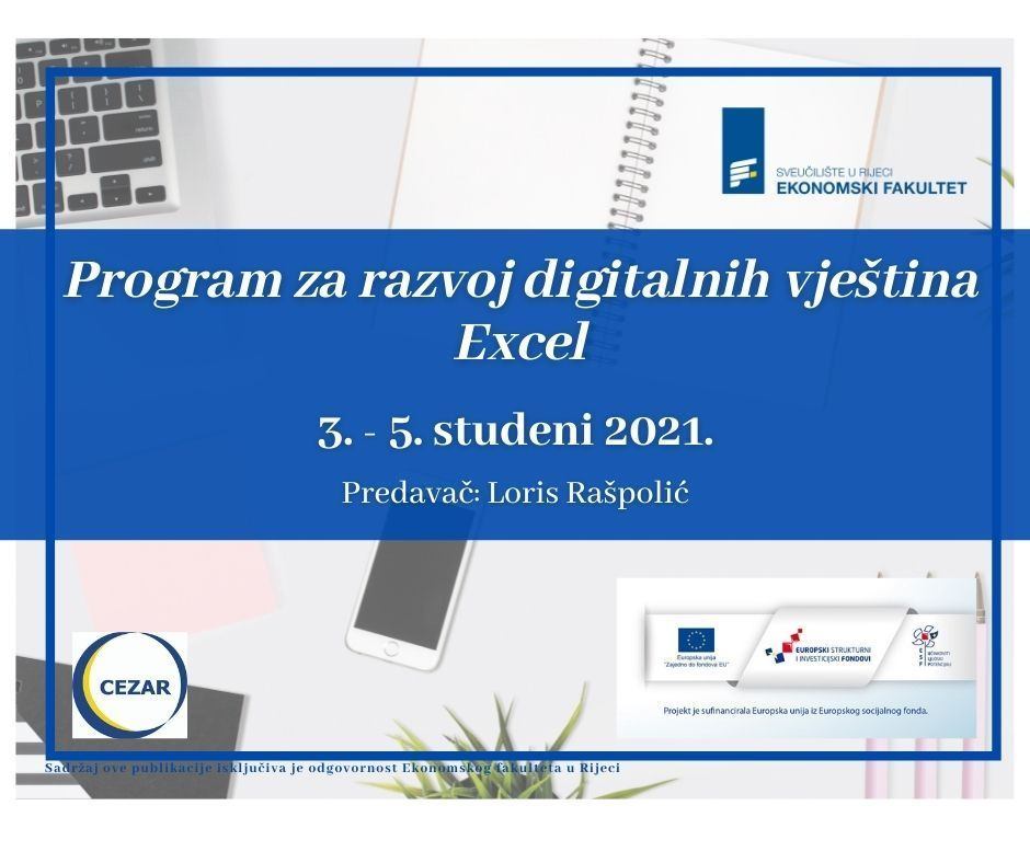 U sklopu EU projekta: „Povećanje zapošljivosti studenata kroz unapređenje Centra za karijere i razvoj stručne prakse – CEZAR", čiji je nositelj Ekonomski fakultet Sveučilišta u Rijeci, Centar za karijere organizira program za razvoj digitalnih vještina.