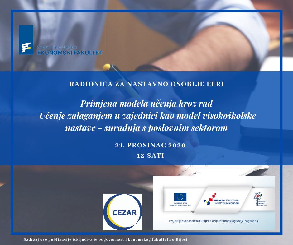 kroz unapređenje Centra za karijere i razvoj stručne prakse – CEZAR", održat će se još jedna radionica namijenjena nastavnom osoblju Ekonomskog fakulteta u Rijeci.
