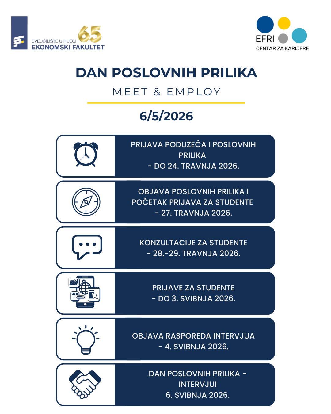 Još jedno izdanje Dana poslovnih prilika – Meet&Employ, očekuje nas 6. svibnja 2026. godine na Ekonomskom fakultetu Sveučilišta u Rijeci.