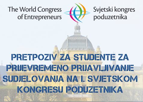 Pozivamo studente Ekonomskog fakulteta u Rijeci da sudjeluju na I. Svjetskom kongresu poduzetnika, koji će biti održan u Hrvatskoj, u Zagrebu, od 24. do 27. 10. 2018. godine.