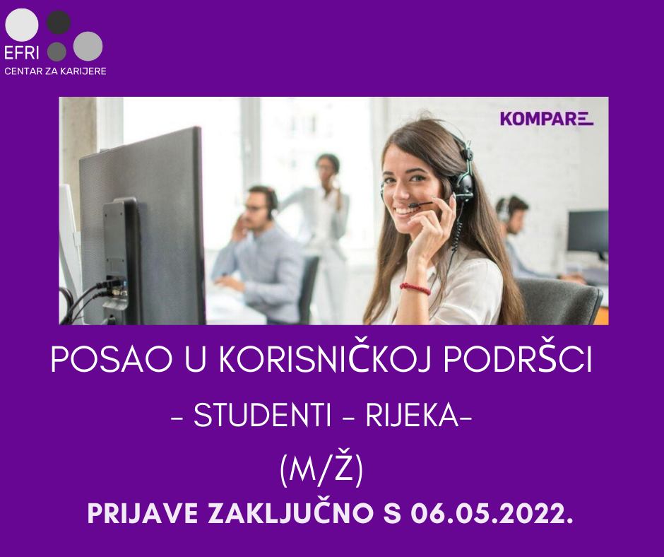 - telephone communication with Kompare customers: receiving and resolving user inquiries received primarily by telephone and secondarily by e-mail, social networks, mobile communication applications (Viber, WhatsApp…)