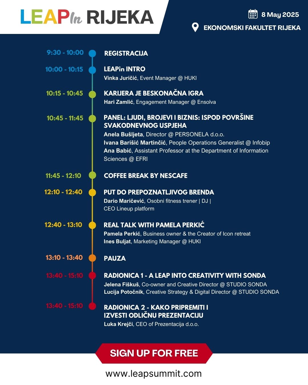 Ulaz na konferenciju je besplatan! Osigurajte svoje mjesto na vrijeme leapsummit.com/leapin