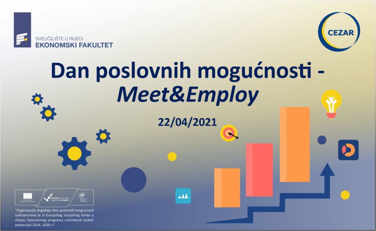 Dan poslovnih mogućnosti - Meet&Employ prvi je ovakav događaj u Rijeci i Primorsko – goranskoj županiji, a omogućit će ostvarivanja suradnje između studenata i poslodavaca u vidu zapošljavanja, primanja na stručnu praksu/pripravništvo, stipendiranja studenata ekonomije i poslovne ekonomije te uvrštavanja u bazu potencijalnih zaposlenik.