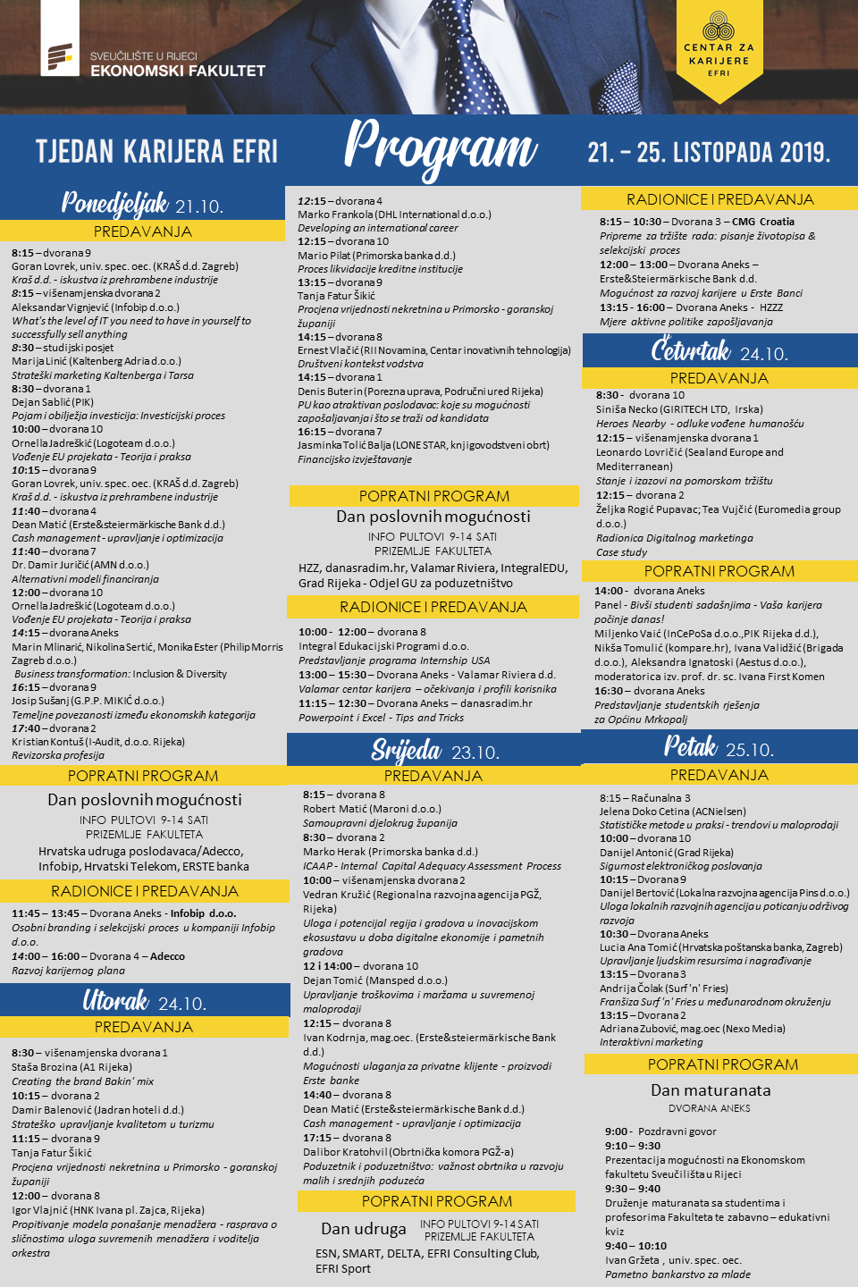 I ove akademske godine, na Ekonomskom fakultetu u Rijeci, u periodu od 21. do 25. listopada 2019., održava se veliki Tjedan karijera!