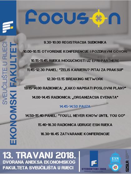 Drugu godinu za redom, Ekonomski fakultet Sveučilišta u Rijeci, Centar za karijere, Studentski zbor EFRI i SZ UNIRI, organiziraju veliku studentsku konferenciju: "FocusON".