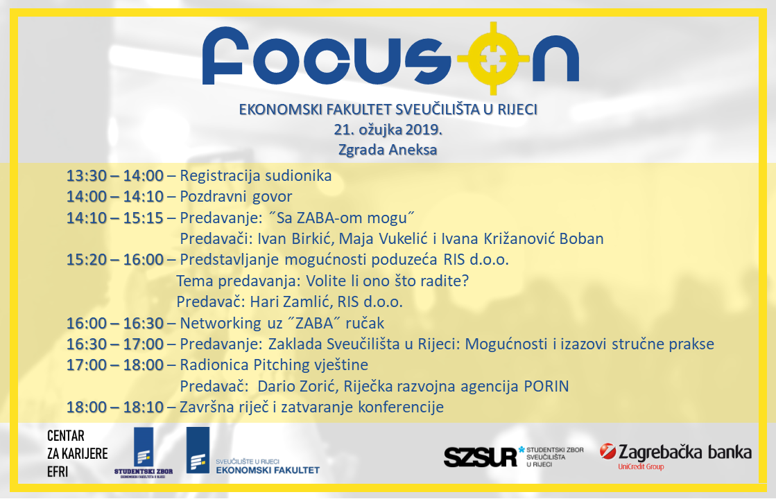 Treću godinu zaredom, Ekonomski fakultet Sveučilišta u Rijeci, Centar za karijere EFRI, Studentski zbor EFRI i SZ UNIRI organiziraju studentsku konferenciju: ˝FocusON".