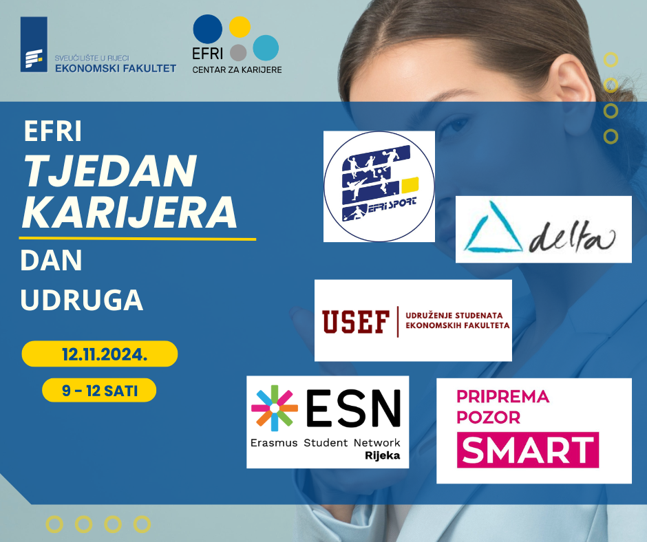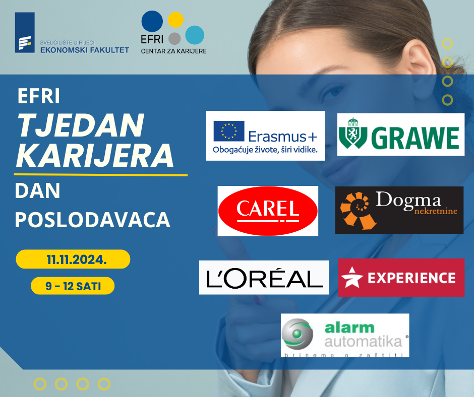 Ekonomski fakultet Sveučilišta u Rijeci i Centar za karijere EFRI s ponosom najavljuju sedmo izdanje Tjedna karijera – jedinstvenog događaja koji spaja studente, stručnjake iz gospodarstva te vodeće poslodavce i organizacije s ciljem razvoja karijere i profesionalnog umrežavanja.