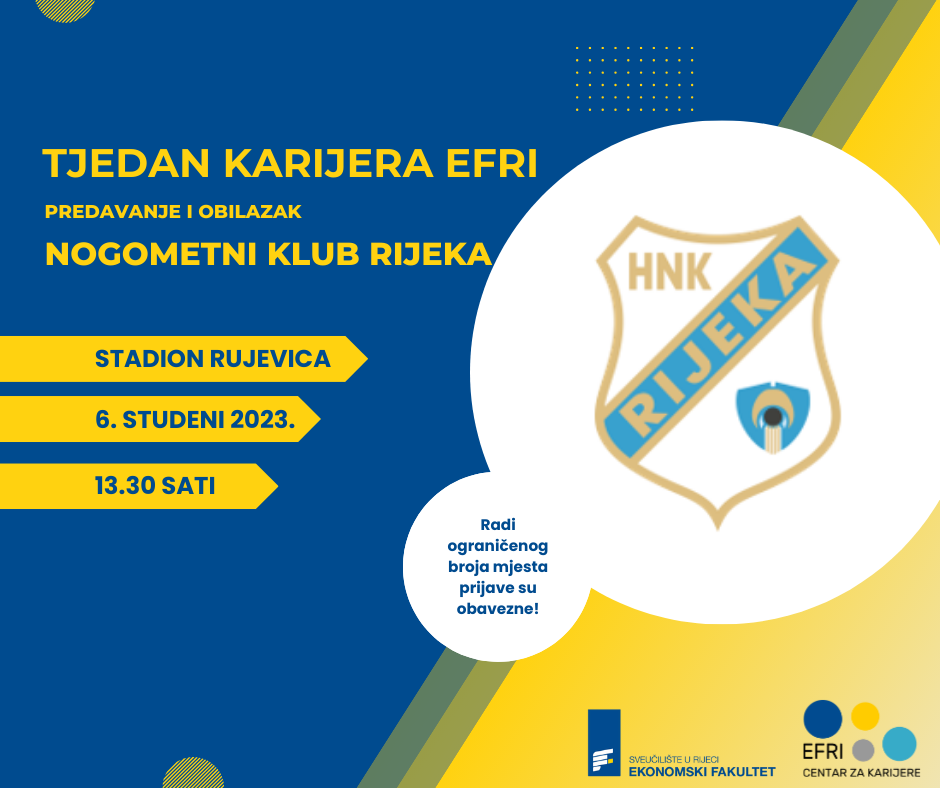 U sklopu programa Tjedna karijera EFRI, studenti imaju priliku posjetiti HNK Rijeku. Posjet će se održati 6. studenog s početkom u 13.30 sati na Rujevici.